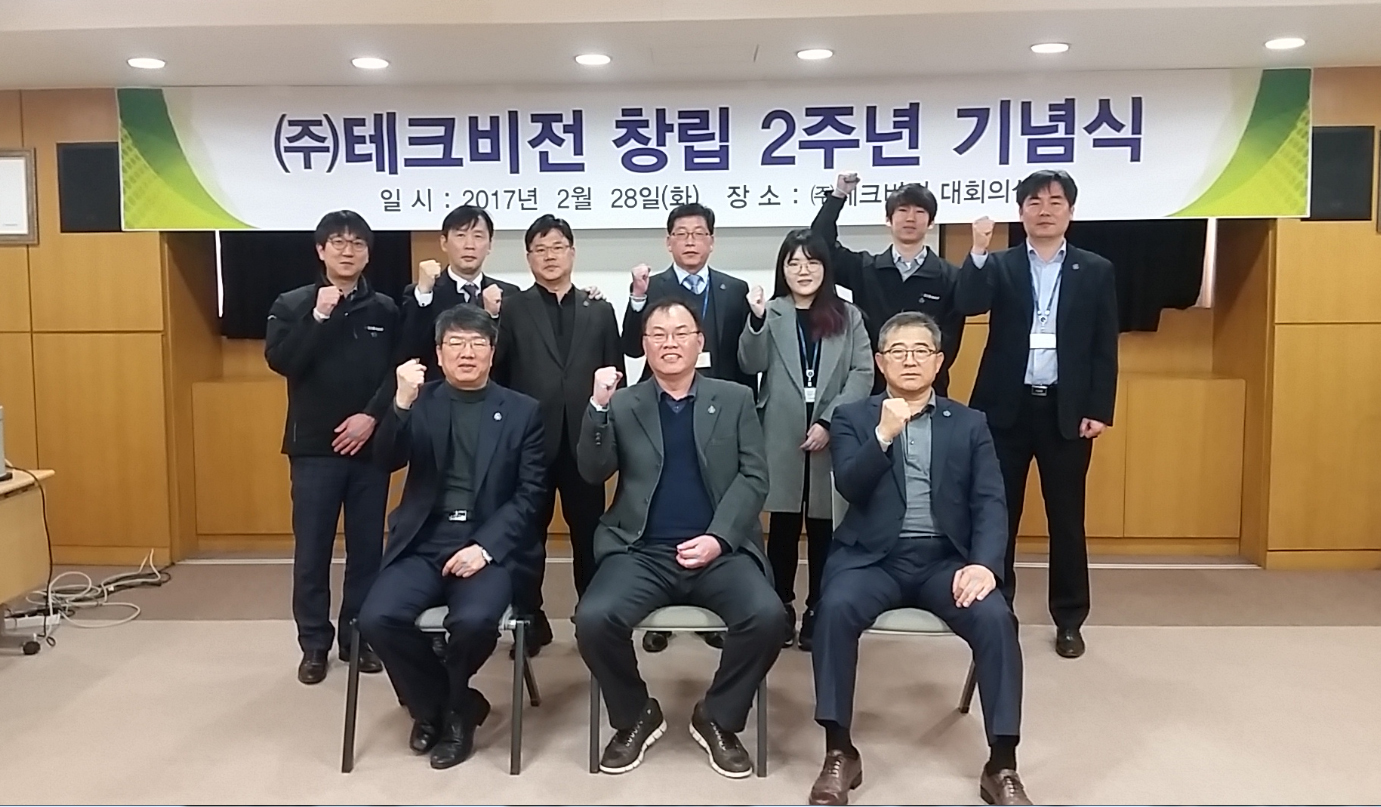 지난 2월 28일(창립기념일 3월 1일), 당사 대회의실에서 “㈜테크비전 2주년 창립기념일” 행사가 진행되었습니다. 이 날 행사에는 ㈜테크비전 송혁재 대표이사 및 임직원과 코오롱글로벌(주) 한인호 인프라본부장, 전략기획본부 이기원 상무, 김문수 기술연구소장, 강문선 연구개발팀장이 참석하여 함께 축하하였습니다. 송혁재 대표이사는 사업별 리스크 관리와 매출 극대화에 최선의 노력을 다할 것을 당부 하셨습니다. 축하케익 커팅식을 끝으로 행사를 마쳤습니다.